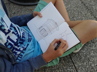 O almoço foi no Choupal. A parte da tarde foi dedicada ao Choupal e Ermida Nossa Sra. do Ameal. Os mais "corajosos" (estava imenso calor) e subiram a Encosta até ao bairro do Forte. O António foi mesmo até ao topo mais alto para levar o pessoal a desenhar "telhados deformados". A Suzana ficou-se pela Loja do Sr. Cuxixo e da Sra. Prazeres. Cá fora sentada, estava a moradora mais velha do Bairro, 96 anos - a Suzana desenhou-a. Enquanto isso várias pessoas aproximam-se, observando o trabalho da Suzana. Momentos de alegria.