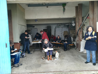 Afinal não é só na Freiria que se reza pouco, na Bordinheira também. A chuva chegou, mas em forma de aguaceiros rápidos. Os moinhos e a moagem transformaram-se em abrigos. O excelente estado de conservação em que se encontram, conferiram todo o conforto necessário para uma boa manhã de desenho. As abertas eram aproveitadas por alguns. Outros transformaram a moagem num verdadeiro atelier, e ainda houve quem preferisse o automóvel.