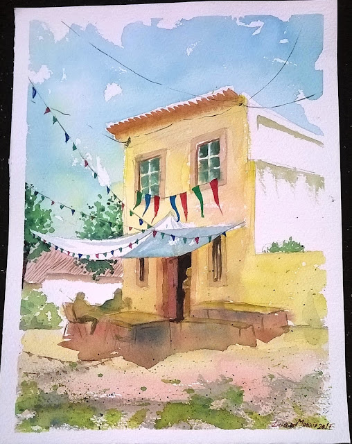 Aqui apanhada em flagrante delito pela objectiva do Bruno Vieira, a pintar o tal recanto.