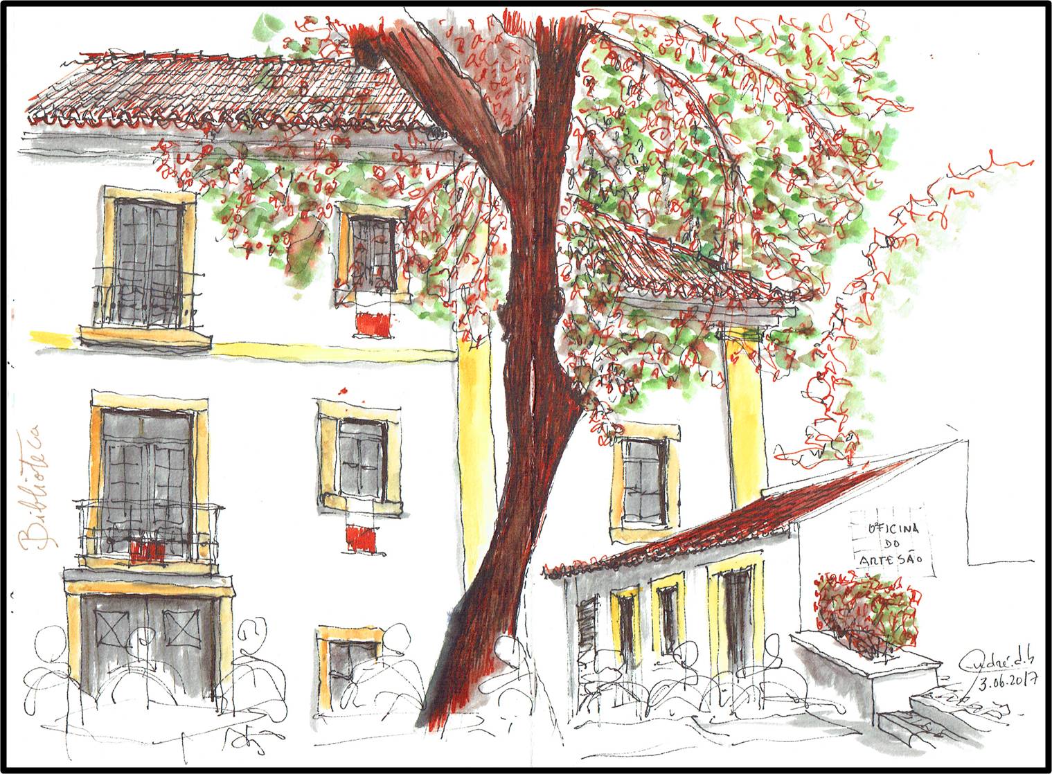 A caneta preta acabou. Mas quem tem uma velhinha BIC, nunca fica apeado. Os últimos desenhos. Não deu para ficar a tarde toda, mas valeu a pena.