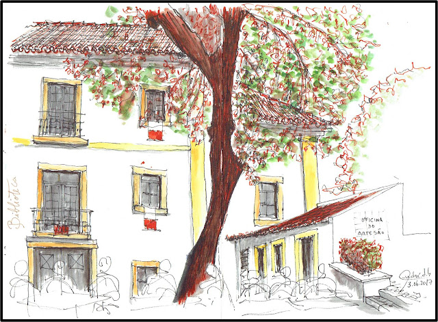 A 2ª coisa que um sketcher mais gosta é de comer e a 3ª, uma boa esplanada com bom enquadramento. Café no pátio do Palácio.